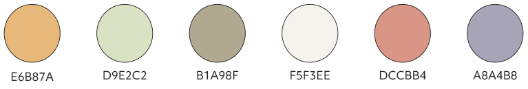 The supporting palette is soft, neutral, and versatile—designed to evoke balance, ease, and modern simplicity. Together, these colors support a brand experience that’s natural, calm, and design-forward.