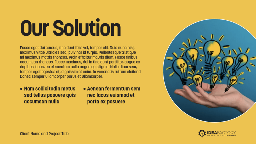 The team at IdeaFactory was spending too much time manually creating new presentations from the ground up for each pitch or presentation. Without a standardized template, branding inconsistencies crept in, and team members—especially non-designers—found it frustrating to piece together slides that aligned with their brand identity. No one had the bandwidth to create a fully functional template that worked across different team members’ needs.