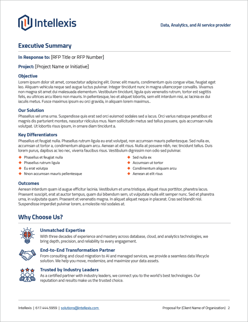 - Equipped internal teams with professional, ready-to-use tools to streamline proposal development and accelerate new business initiatives.